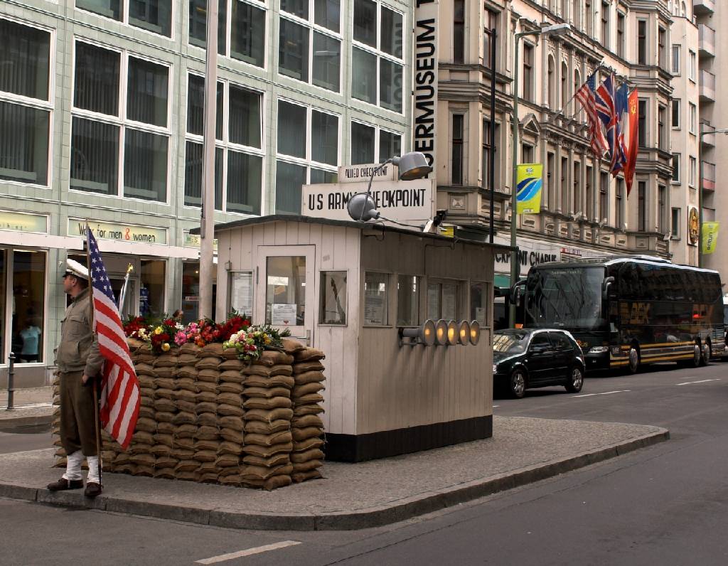 Checkpoint Charlien replika näyttelijällä varustettuna.