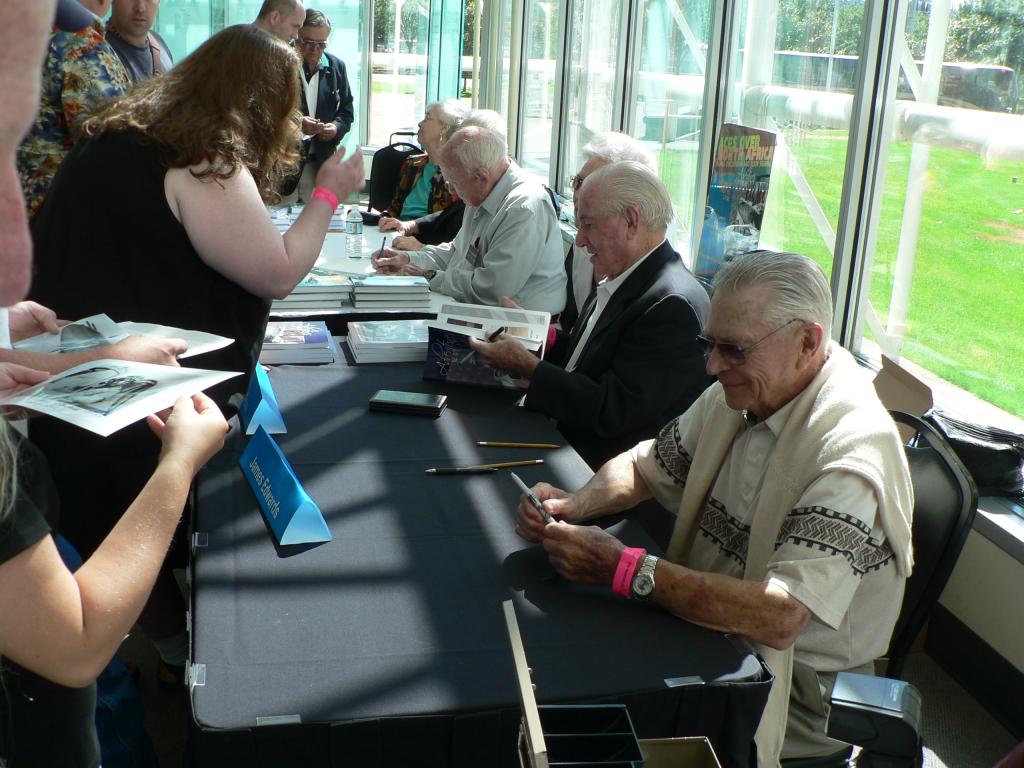 A lecture by three WW2 veterans. Hamilton McWhorter (F4F/F6F, US), James Edwards (P40s/Spitfires, Canada) and Herbert Ross (P-38s, US)